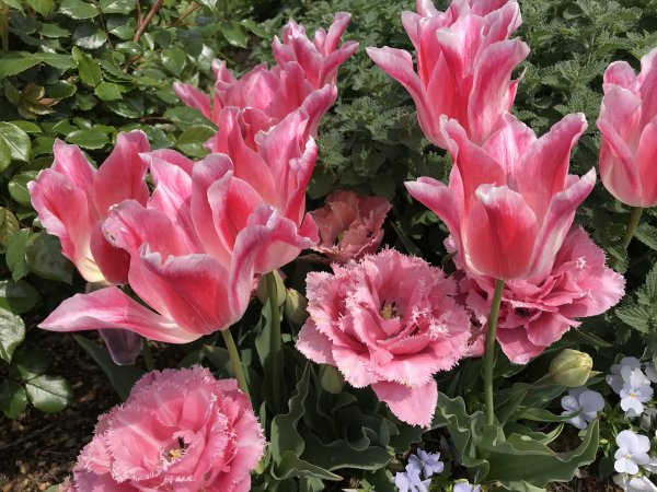 「桜と残雪の爺ガ岳・鹿島槍ヶ岳・五竜岳・白馬三山」(4/中;大町観光道路にて)