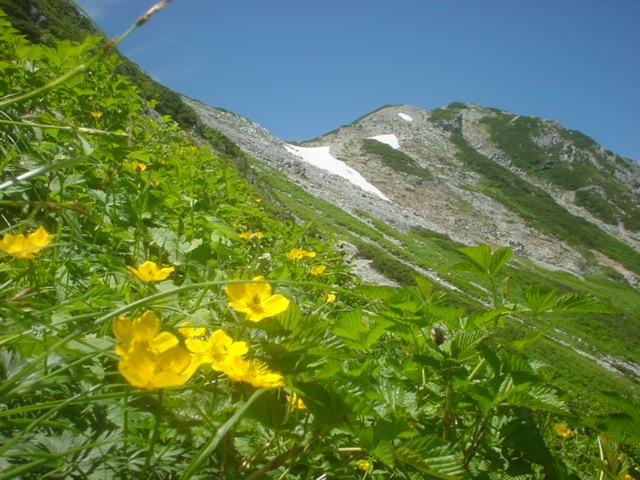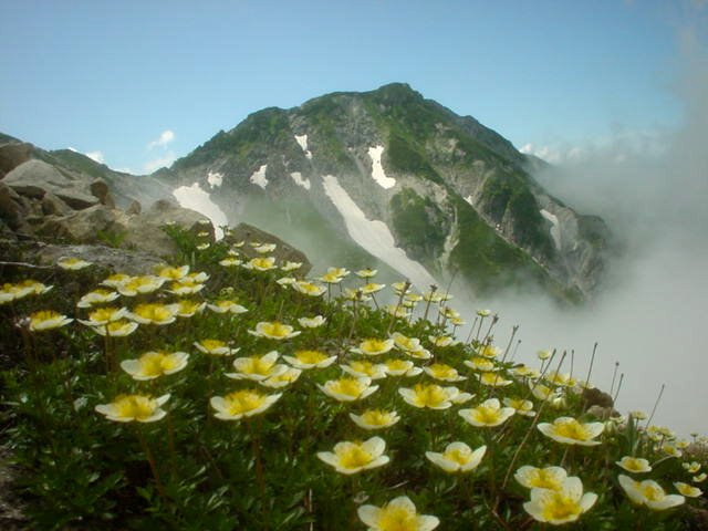 「チングルマ・シナノキンバイの咲く初夏の針ノ木岳」(針ノ木岳にて)