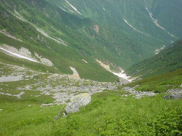 「針の木雪渓と初夏の針ノ木岳」(針の木雪渓にて)