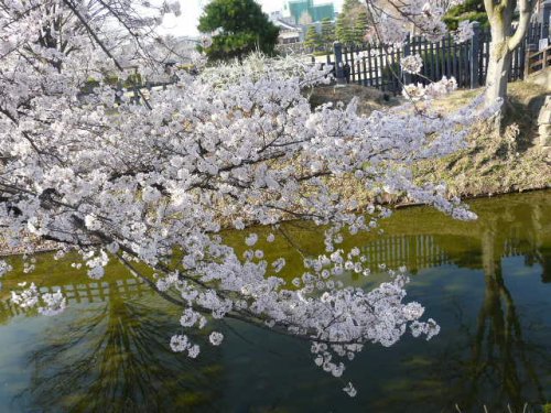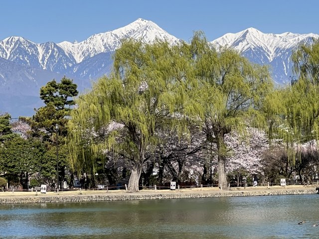「桜トンネル・桜と芝生広場」(松本・城山公園)