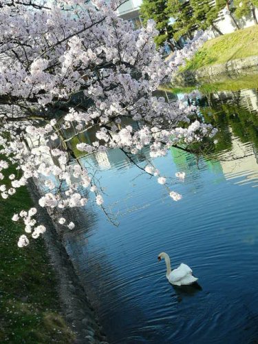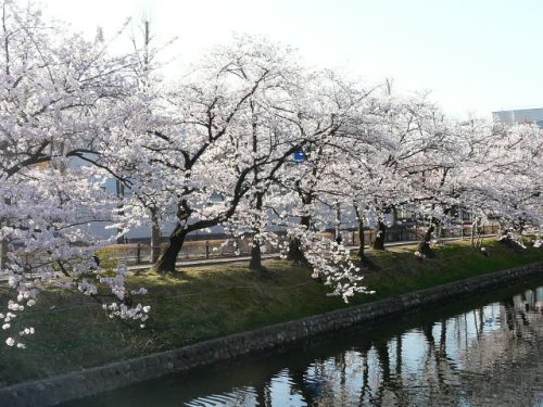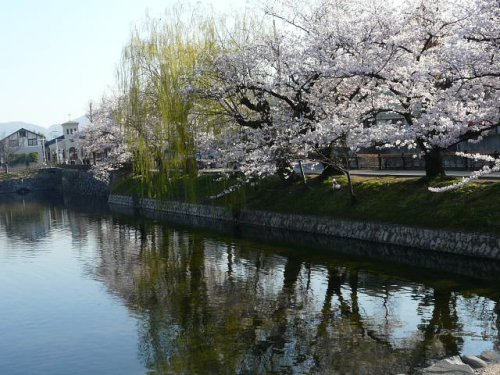「桜咲く女鳥羽川沿い・ナワテ通り・四柱神社」(松本にて)