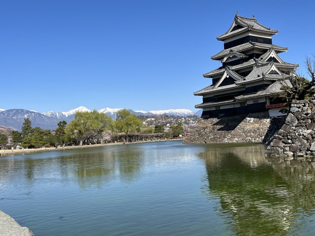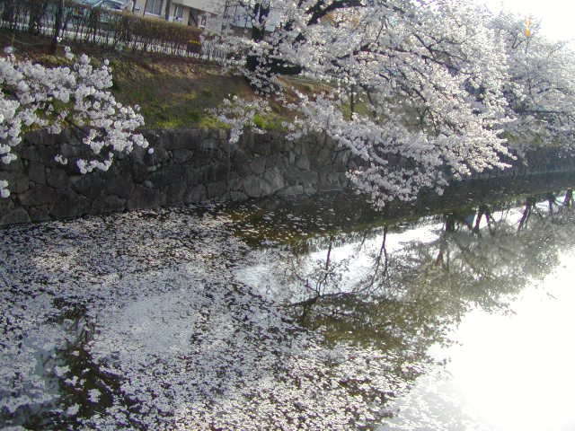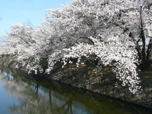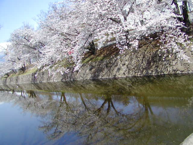 「松本城・お堀の夜桜」(松本城・外堀にて)