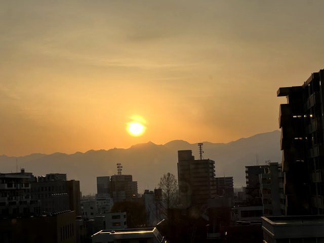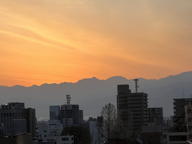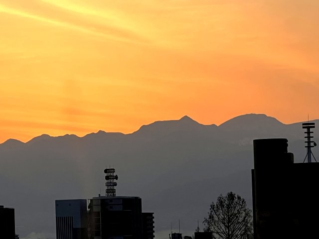 「早春の鹿島槍ヶ岳(南峰・北峰)」(大町公園にて)