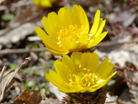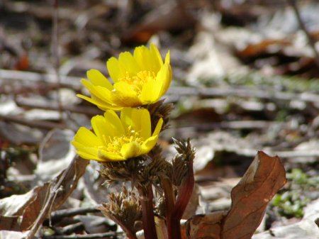 「四賀赤怒田に咲く福寿草」(松本・四賀にて)