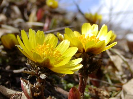 「木崎湖に咲く福寿草」(大町・海の口にて)
