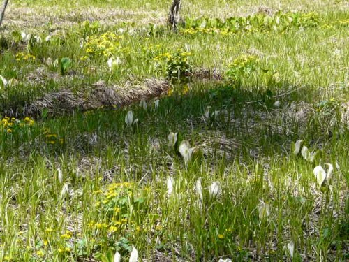 「水芭蕉・リュウキンカ・ザゼンソウ」(居谷里湿原にて)