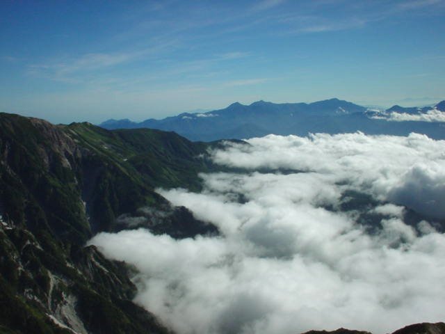 「初秋の杓子岳と北信の山々」(白馬鑓ヶ岳にて)
