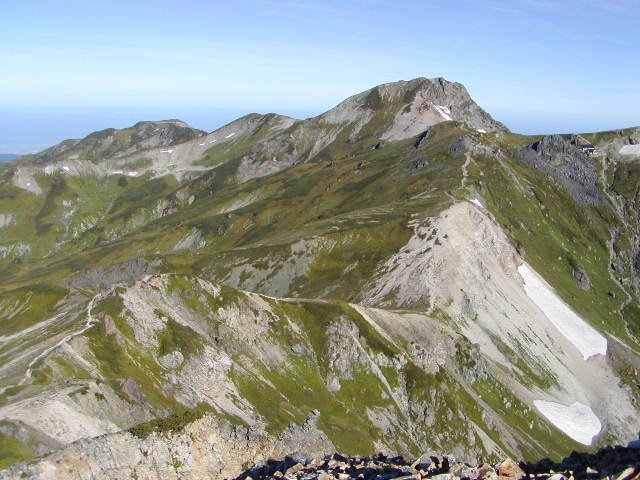 「初秋の旭岳・丸山・白馬岳・杓子岳稜線」(杓子岳にて)