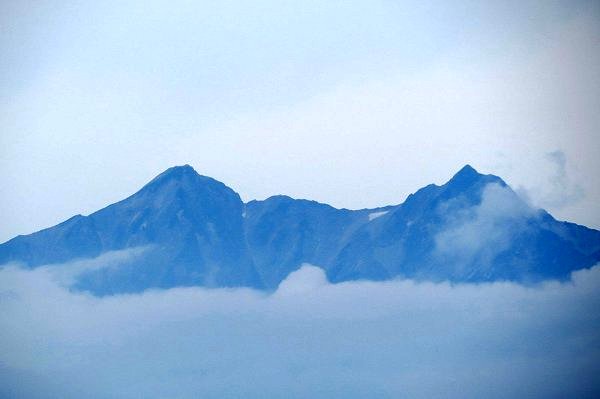 「雲海に浮かぶ初秋の鹿島槍ヶ岳・双耳峰」(9/下;鷹狩山にて)