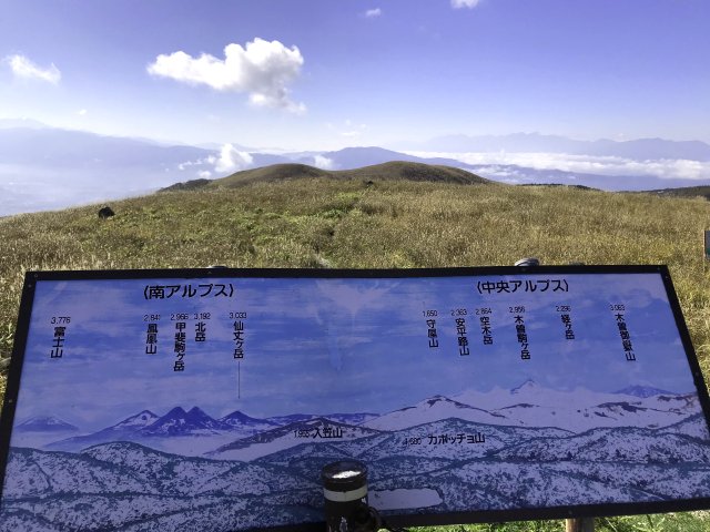 「湿原のススキ・案内板」(八島ヶ原湿原にて)