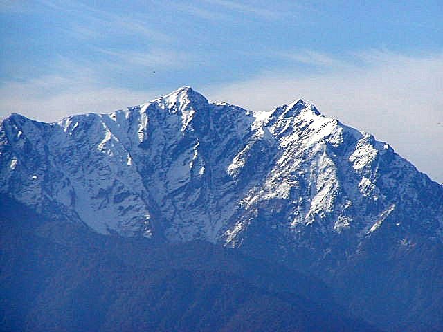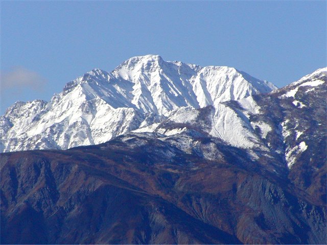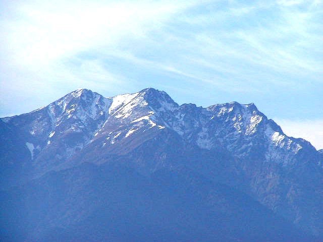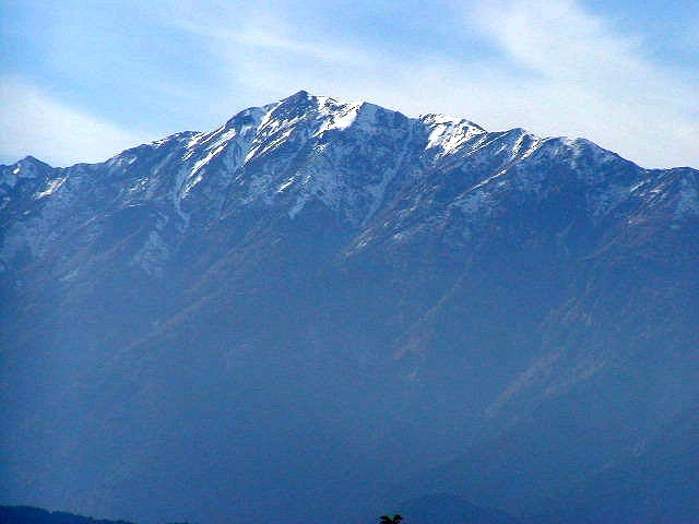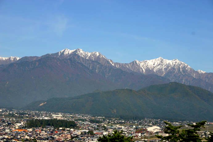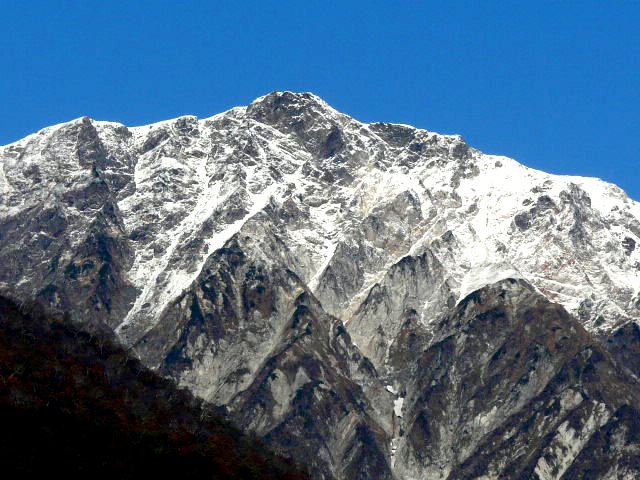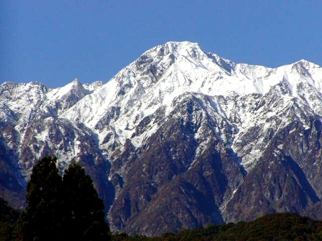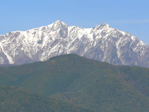 「初冠雪の鹿島槍ヶ岳」(大町公園にて)