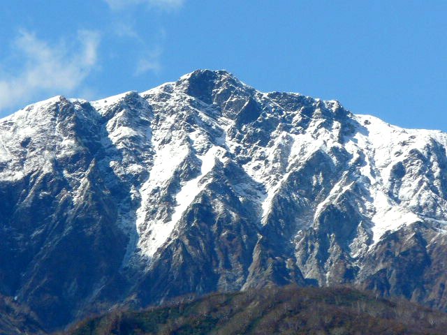 「初冠雪の蓮華岳」(池田町大峰高原にて)