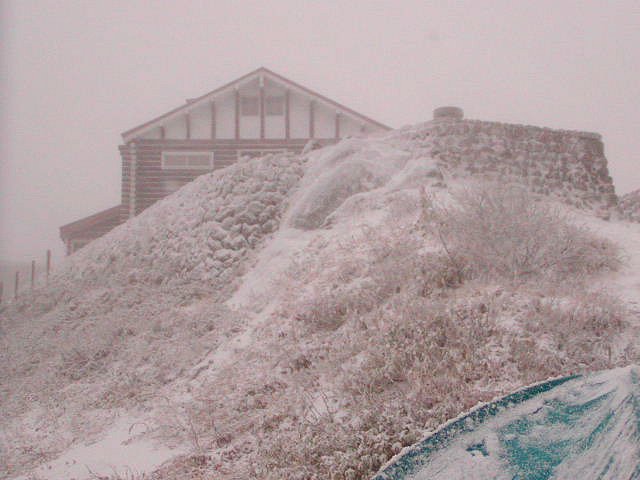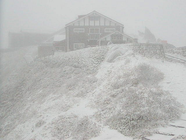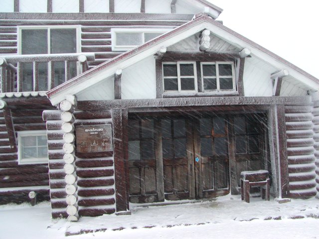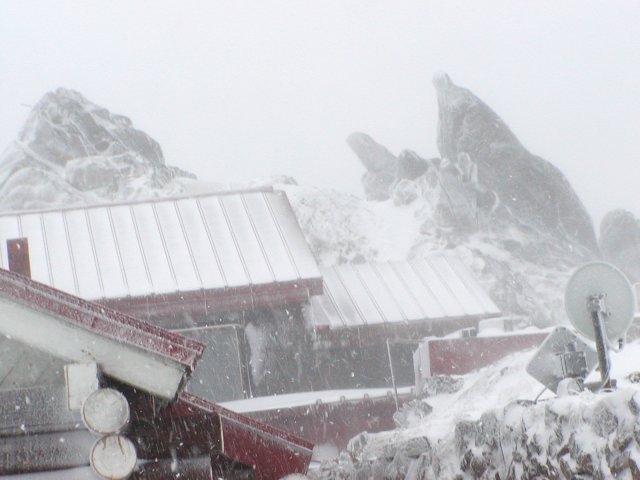 「雪の燕山荘周辺」(燕岳にて)