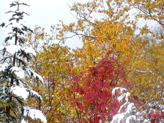 「雪と紅葉」(合戦尾根上部にて)