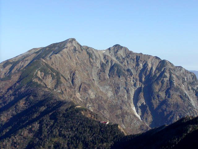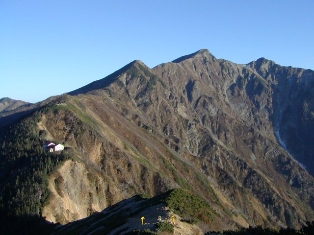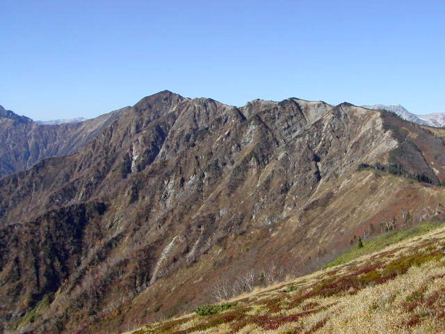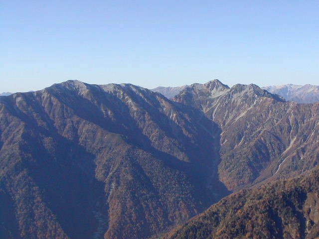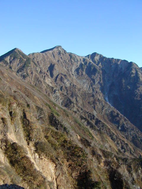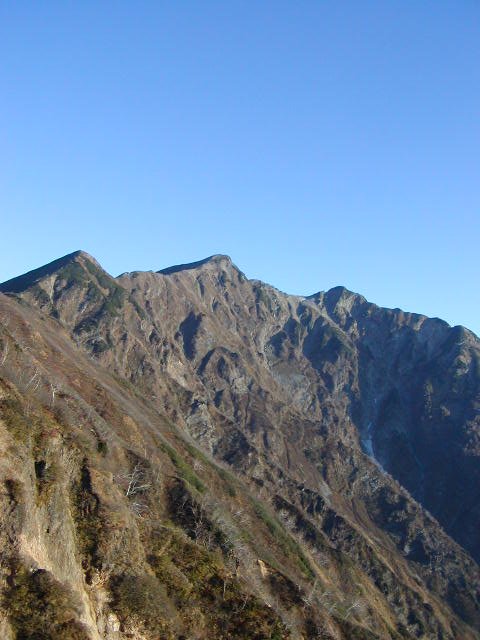 「晩秋の針ノ木岳・スバリ岳」(柏原新道にて)