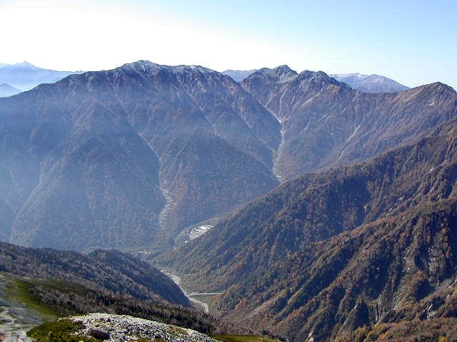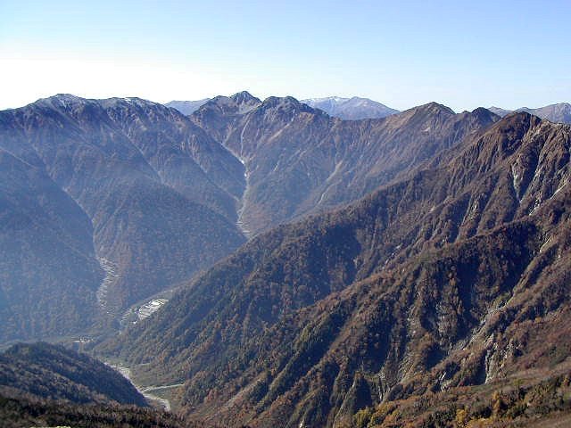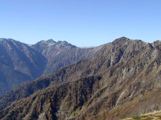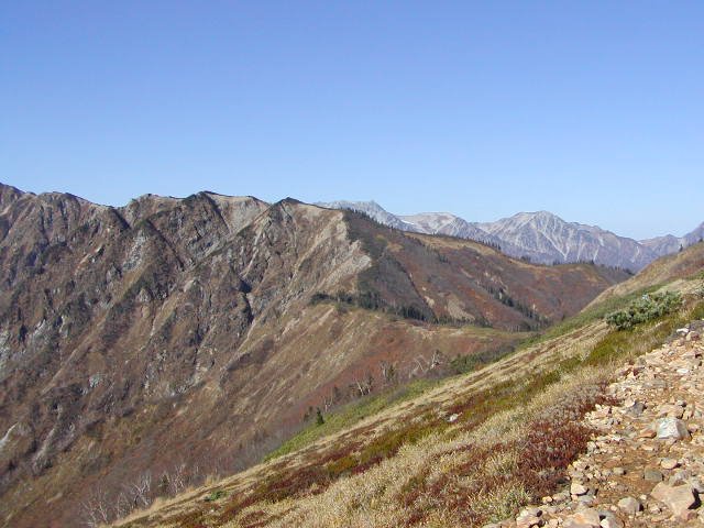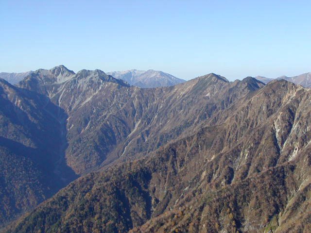 「秋の針ノ木岳・スバリ岳・赤沢岳・鳴沢岳・岩小屋沢岳」(柏原新道にて)
