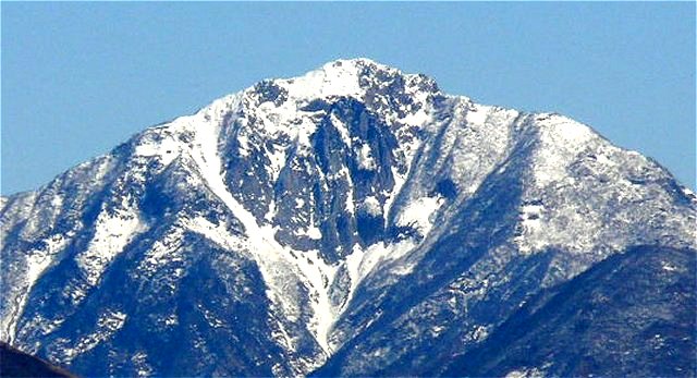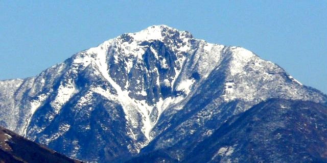 「冠雪した杓子岳」(黒菱林道にて)