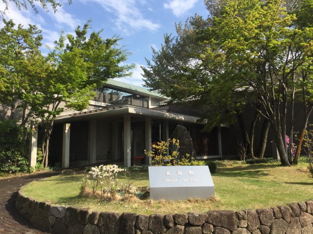 御船会館に荻原碌山の彫刻、豊科出身の画家で教育者の藤森桂谷の掛け軸、漆芸術家の橋節郎の作品など22点が並ぶ。現在の穂高人形・御船祭保存会「保尊教室」の源流をつくった山田實さんが1929年に描いた「安曇野鳥瞰図」は、