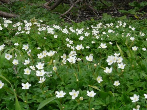 「キクザキイチゲの群生」(青木湖湖畔にて)