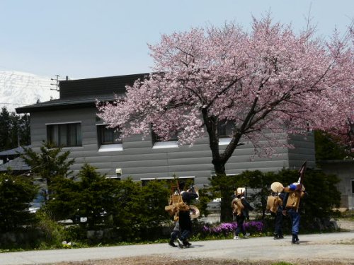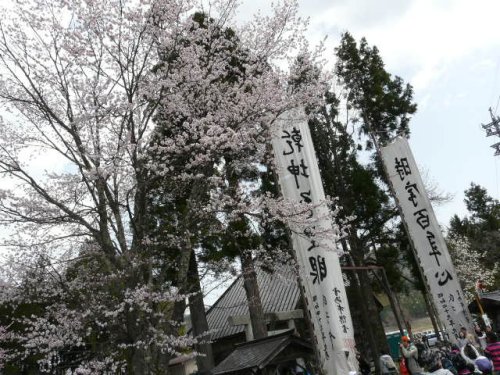 「桜と飯田神社」(白馬塩の道祭りにて)