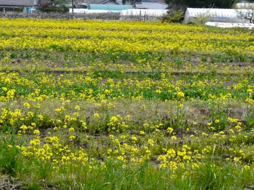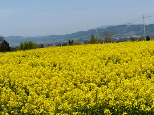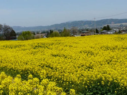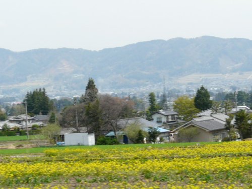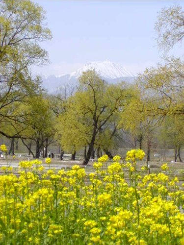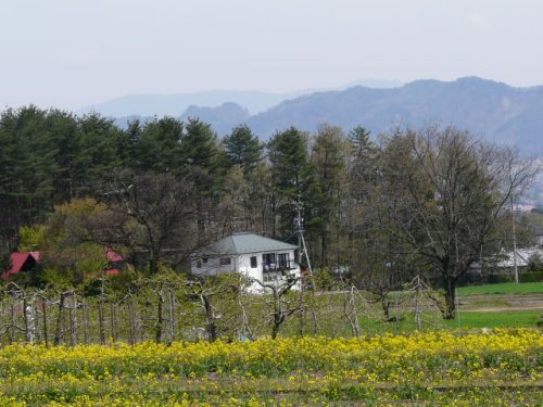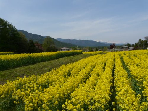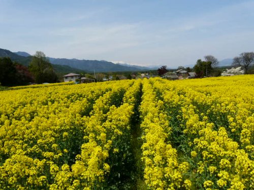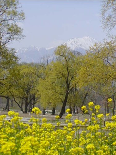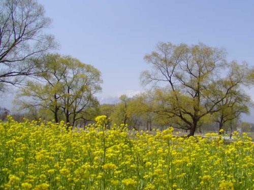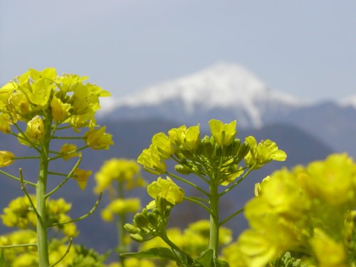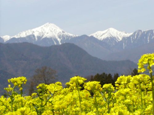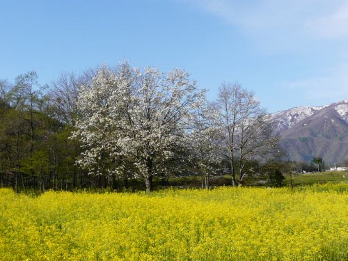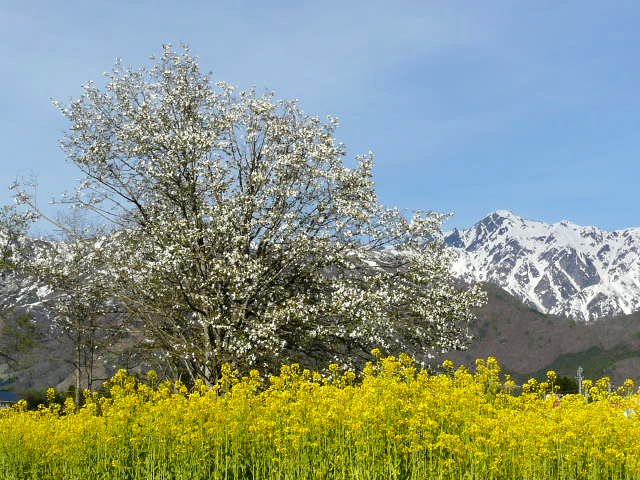 「白馬三山と菜の花・白馬岳と菜の花」(四十九院にて)