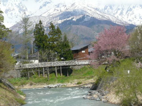 「白馬・大出の吊り橋の桜」(白馬・大出公園にて)