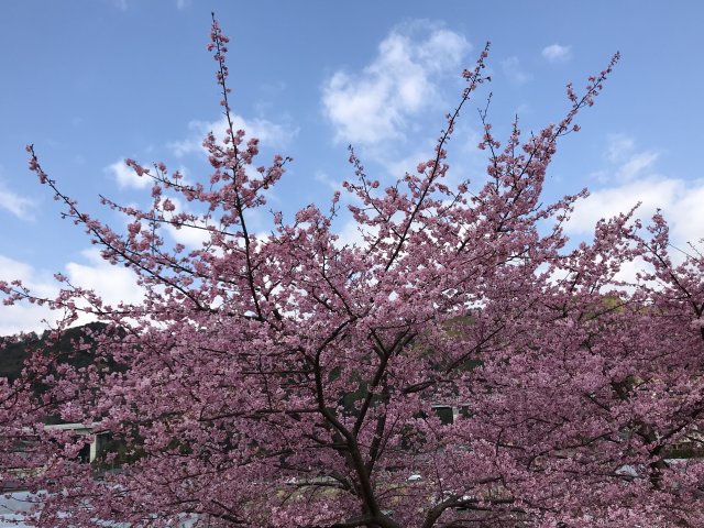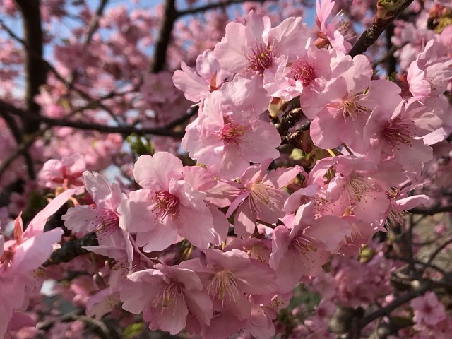 「松本城のコヒガンザクラ」(松本城公園にて)
