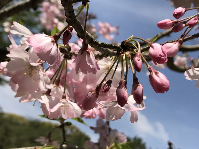 「満願寺の枝垂れ桜・桜」(穂高・満願寺にて)