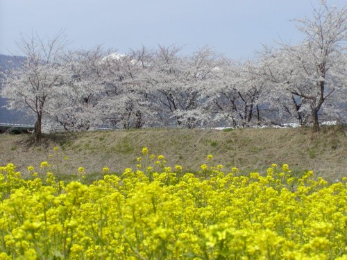 「三郷・黒沢川堤防の桜と菜の花畑」(三郷黒沢川にて)