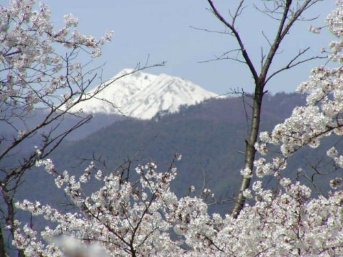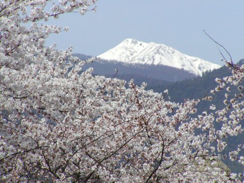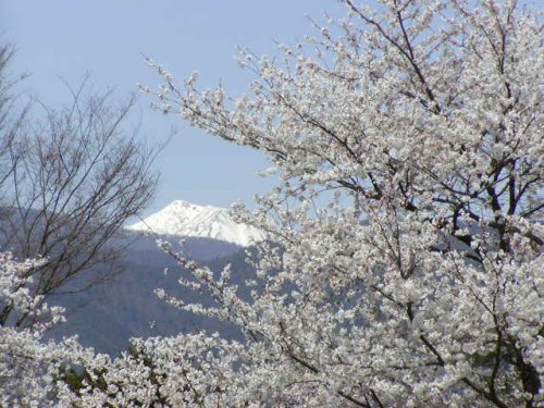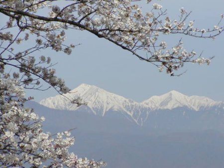 「長峰山の桜と常念岳」(明科・長峰山にて)