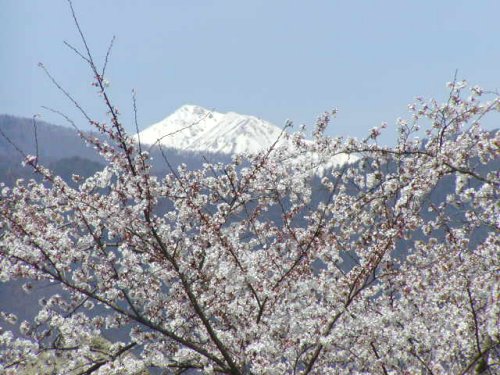 「光城山の桜と常念岳」(豊科・光城山にて)