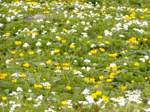「姫川源流に咲くニリンソウ」(5/中;白馬佐野坂にて)