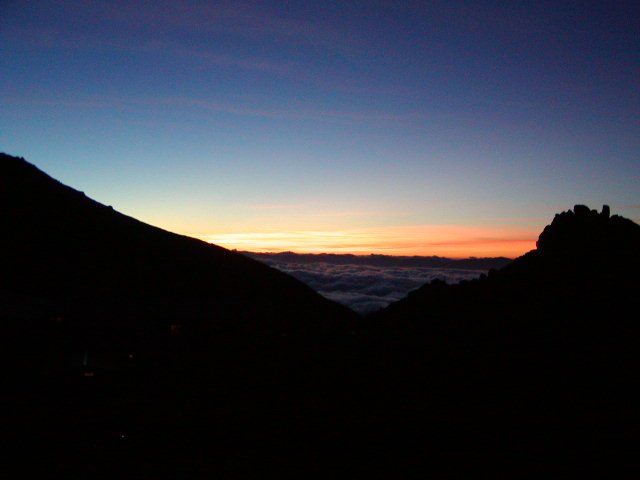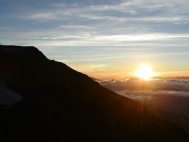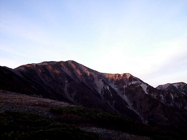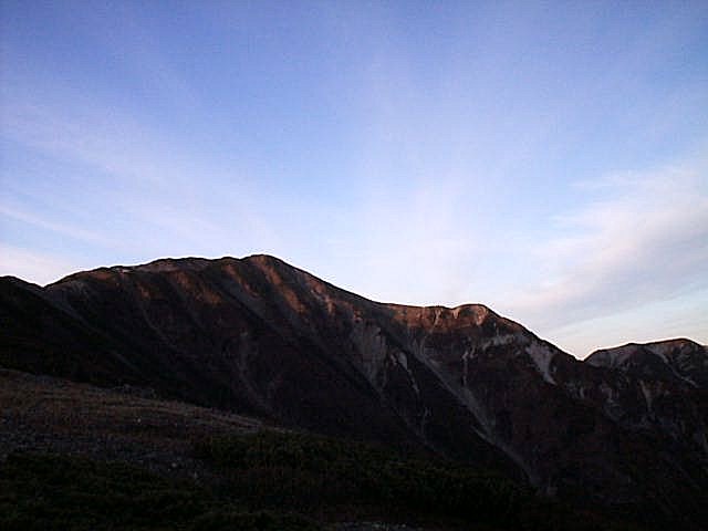 「夕焼けの雪倉岳・朝日岳」(白馬大池・雷鳥坂にて)