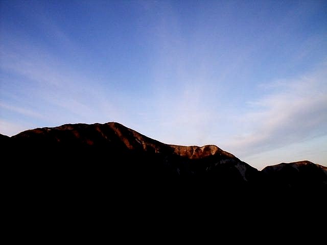 「早朝の穂高連峰」(5/下;小梨平にて)