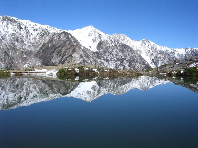 「雪化粧した不帰ノ剣と八方池」(八方尾根にて)