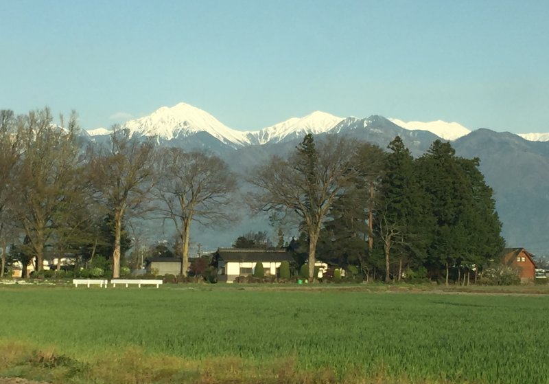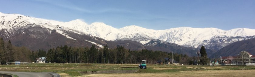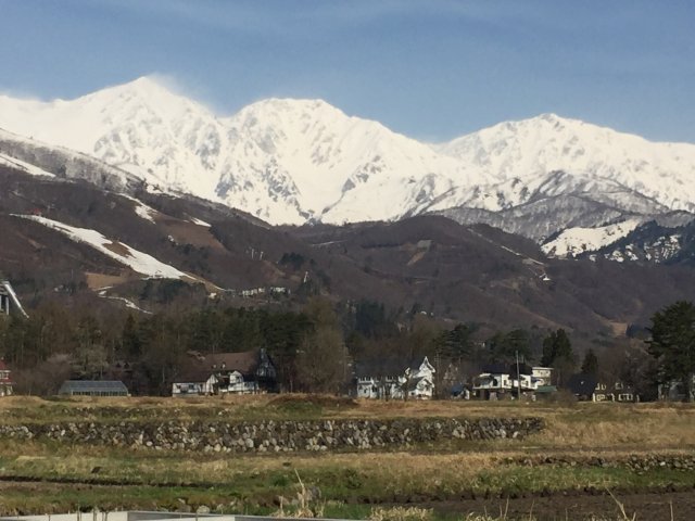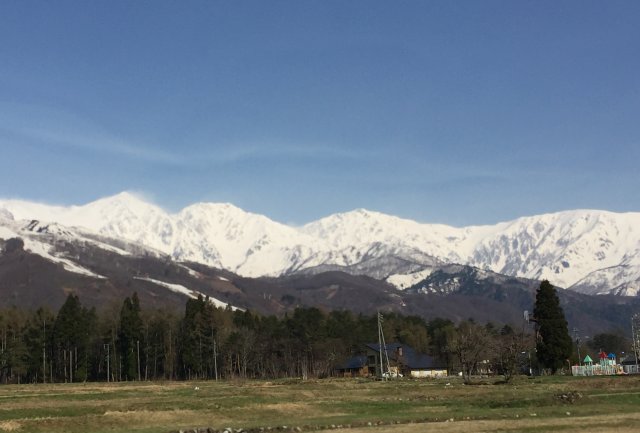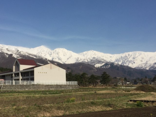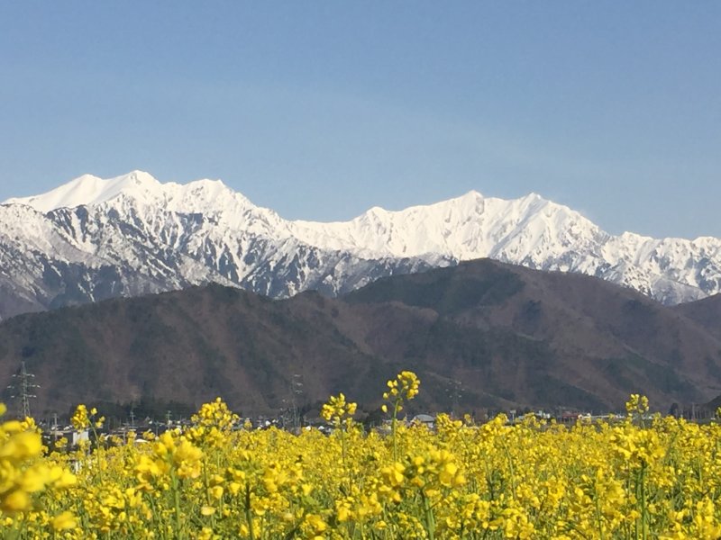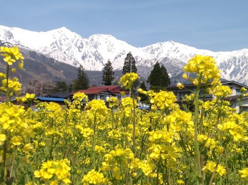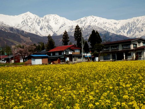 「菜の花と残雪の白馬三山」(白馬四十九院にて)