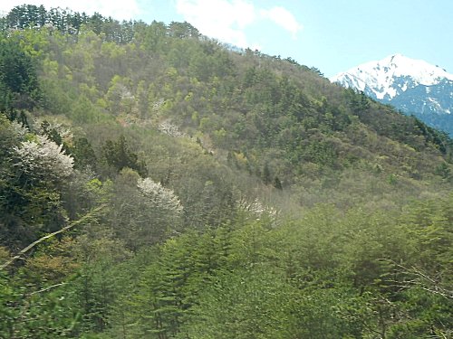 「残雪の鹿島槍ヶ岳と桜」(大町観光道路)