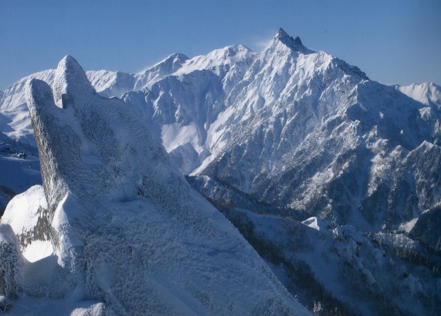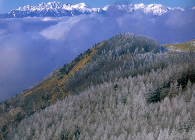 「霧氷林に浮かぶ穂高連峰」(11月:稜線2016)(山本隆一氏)