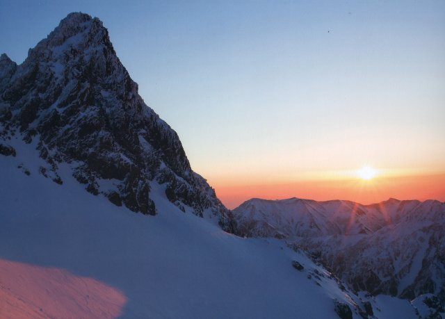 「槍ヶ岳夕照」(2017.12)(栗木譲二氏撮影)