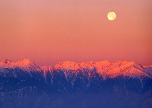 「北アルプスに沈む満月」(2017.1月:山本隆一氏)