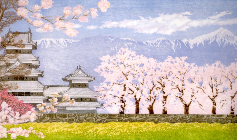 「松本城 桜 常念岳」(2017.03-04月:塩入久)