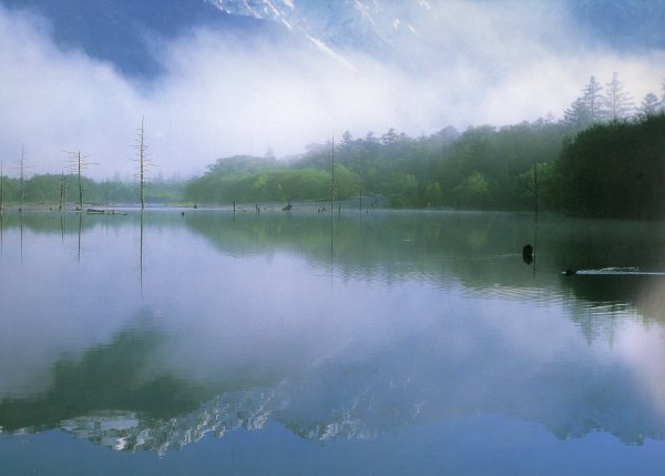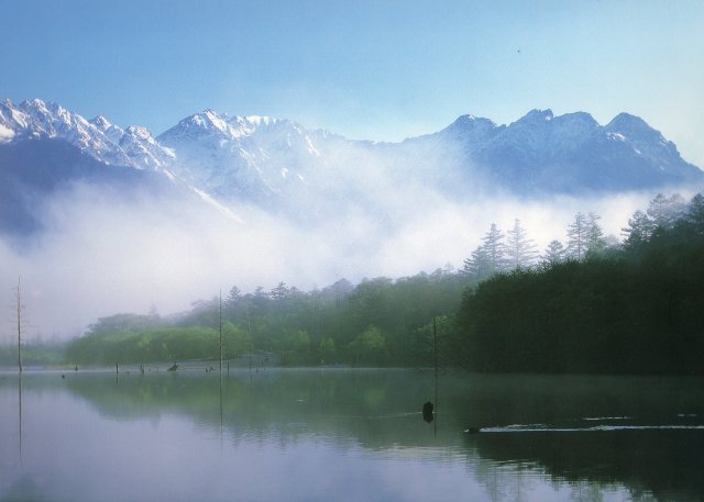 「霧晴れゆく新緑の上高地」(2017.6月:佐々木信一氏)