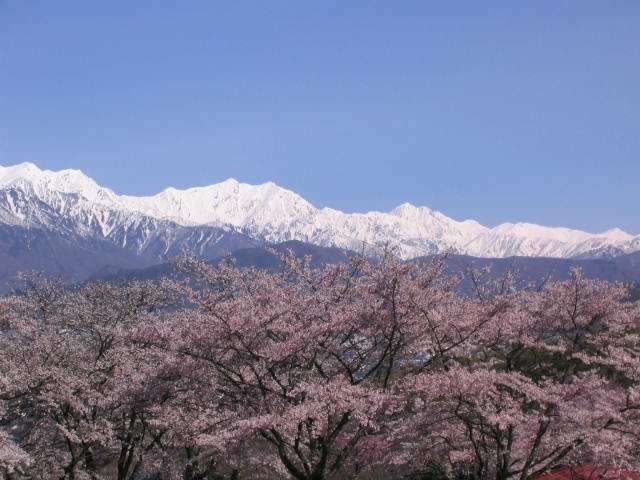 「雪の蓮華岳・爺ヶ岳・鹿島槍ヶ岳・五龍岳」(池田町にて)