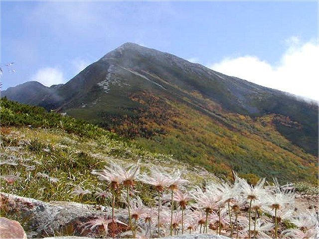 「冠雪した杓子岳」(八方尾根・黒菱にて)
