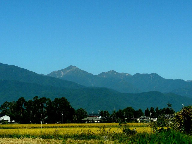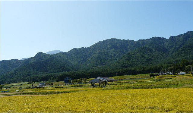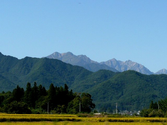 「初秋の田園風景と爺ヶ岳・鹿島槍ヶ岳」(松川村〜大町にて)