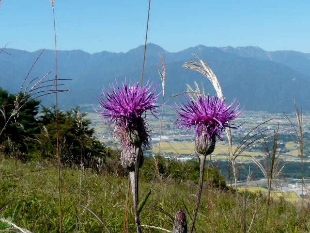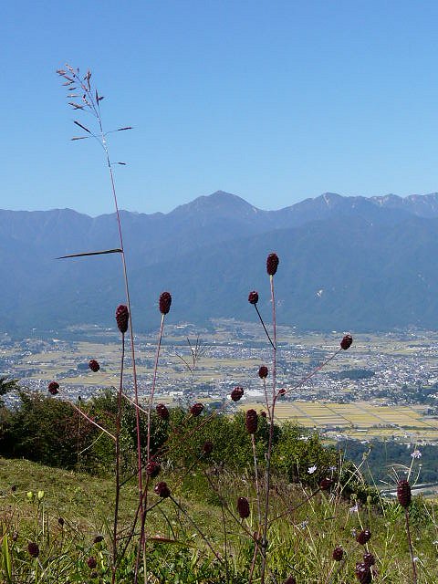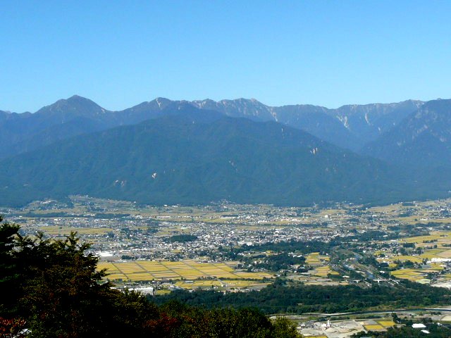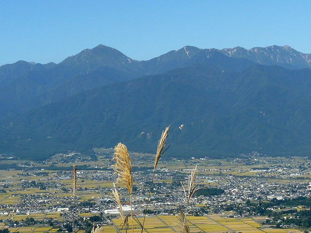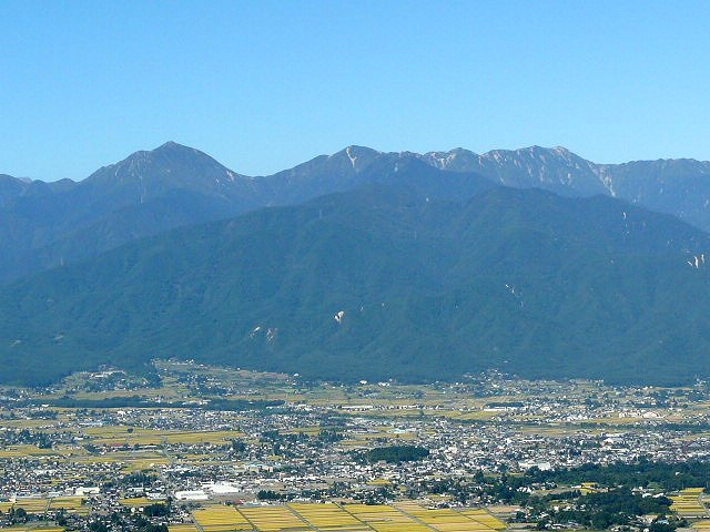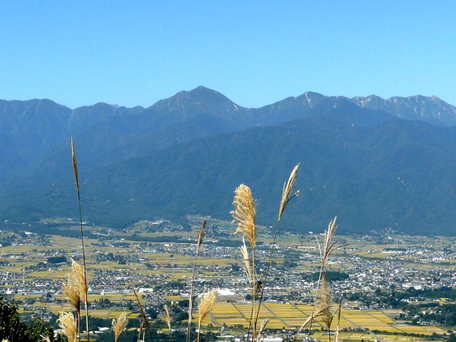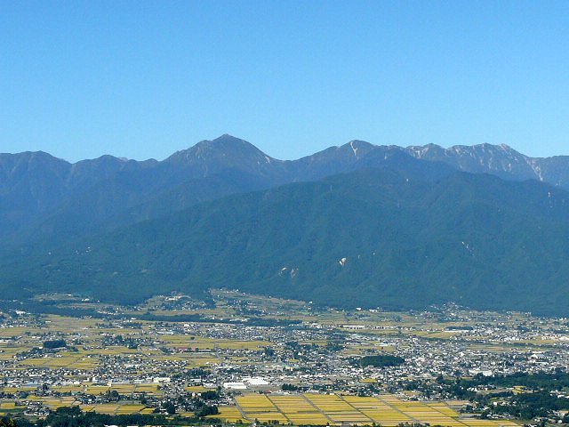 「安曇野の田園風景と初秋の常念岳」(長峰山にて)