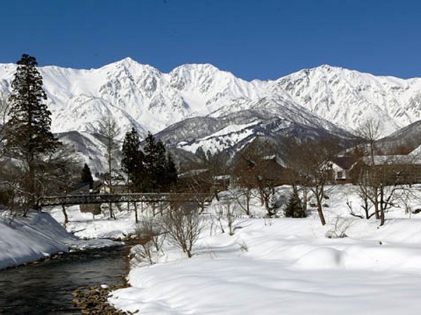 「雪の姫川と白馬三山」(白馬大出公園にて)
