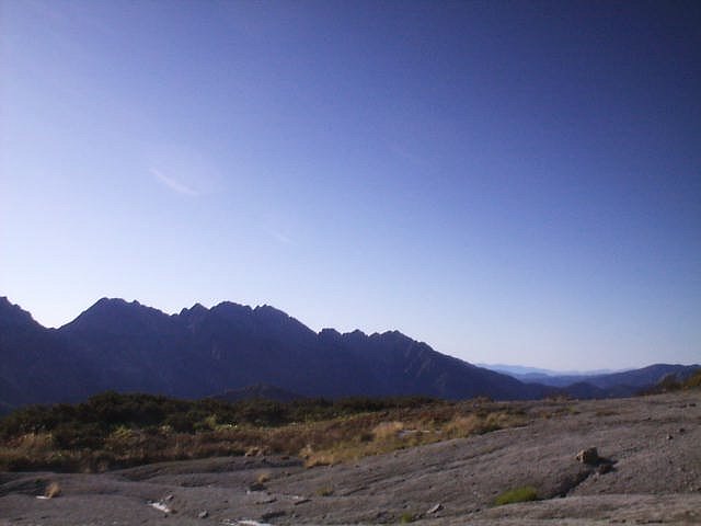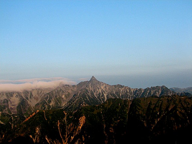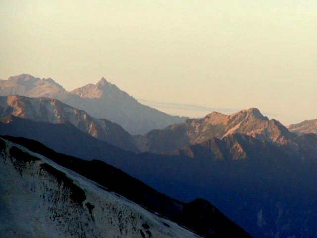 「朝の槍ヶ岳・穂高連峰」(弓折岳にて)