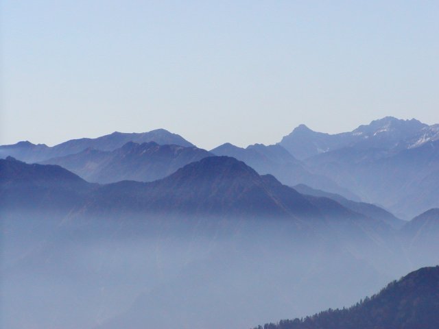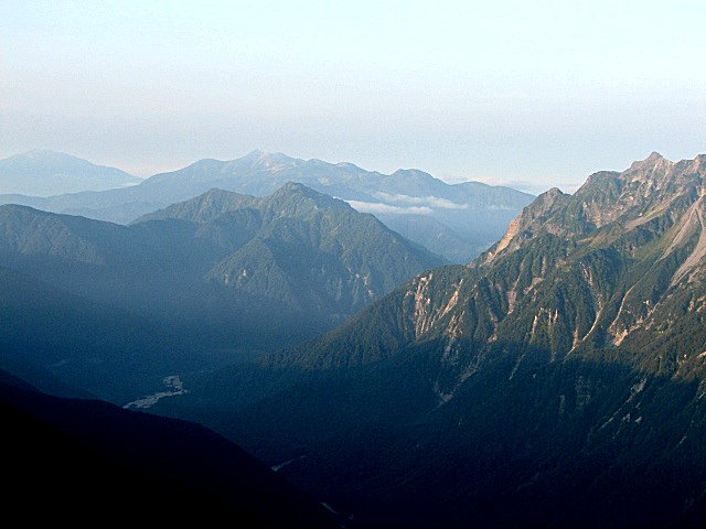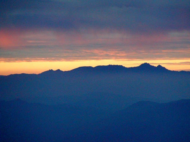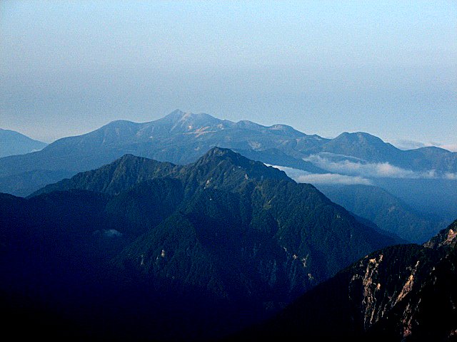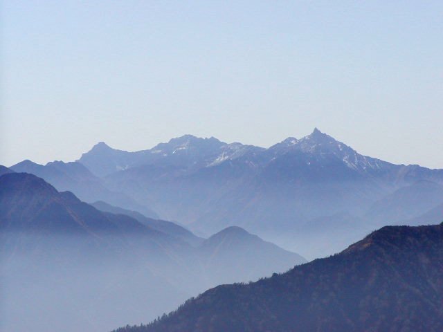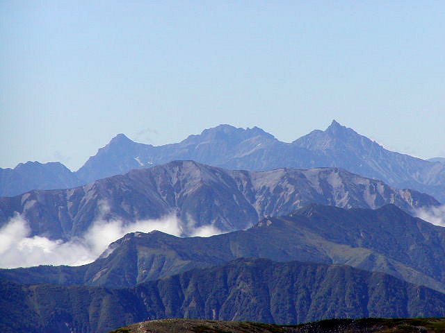「霞沢岳・乗鞍岳、奥に御嶽山」(常念岳にて)