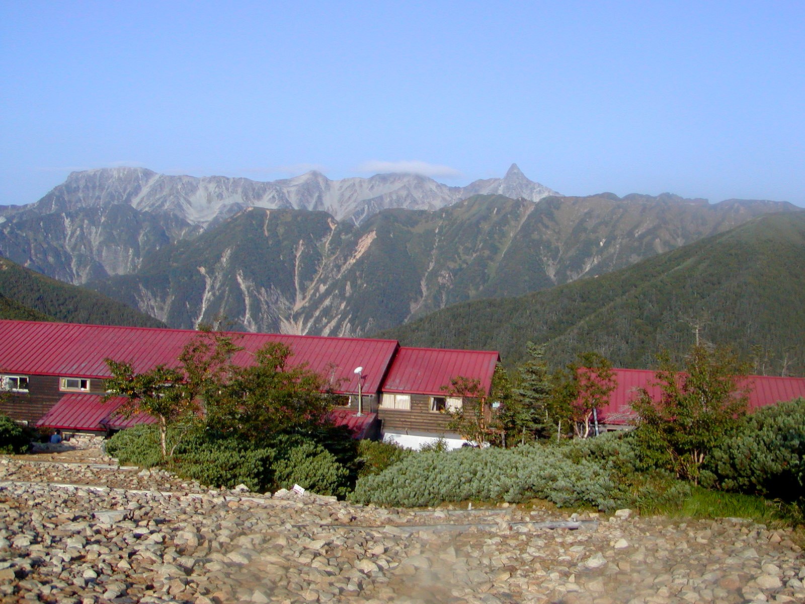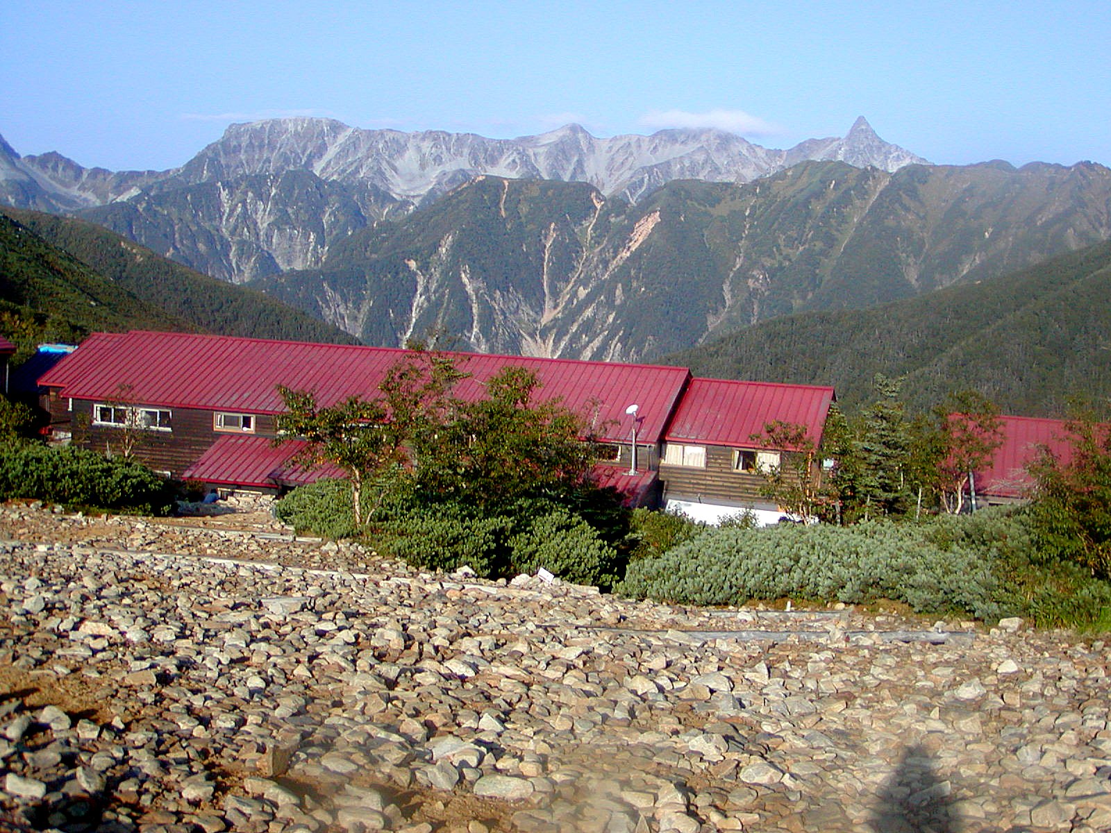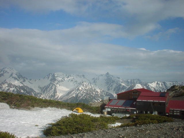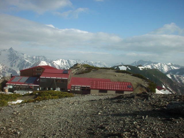 「蝶ヶ岳ヒュッテ」(春の蝶ヶ岳にて)